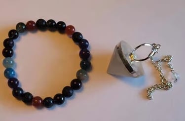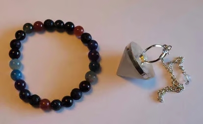De armband wordt dan via een foto speciaal voor jou samengesteld, met behulp van de pendel. Daarna schrijf ik een persoonlijke boodschap erbij op die ik voel bij het maken van de armband.